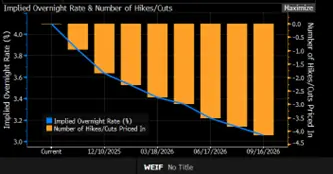 With no jobs data released last week due to the shutdown the markets are working blind, to an extent. The lastest assessment of Treasury perfomrance gives a 90% chance of a 25-point cut at the 29th October meeting