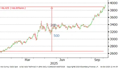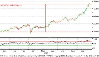 - Outlook: For the much longer term, silver has a robust fundamental outlook but for now, it is still overbought above $47 and needs to correct and consolidate. That said, the metal is being carried higher on its own momentum. Gold is still set fair for further gains, but here, too, conditions need to calm down a little. The solar market remains oversupplied but still has a constructive future, while AI and vehicle electrification will also help to keep the market in a pre-investment deficit. Gold is still pricing in concerns over Fed independence and the possibility of stagflation as well as underlying geopolitical risk and international tensions.