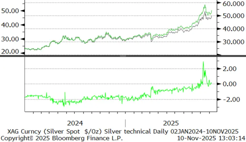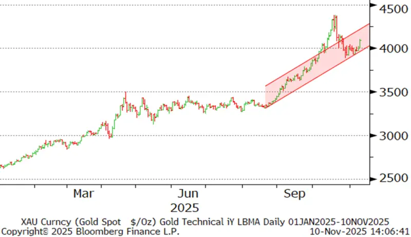 Meanwhile the US bond markets are still pricing in a 66% chance of one more 25-point cut this year. The next FOMC meeting is scheduled for 9-10 December.