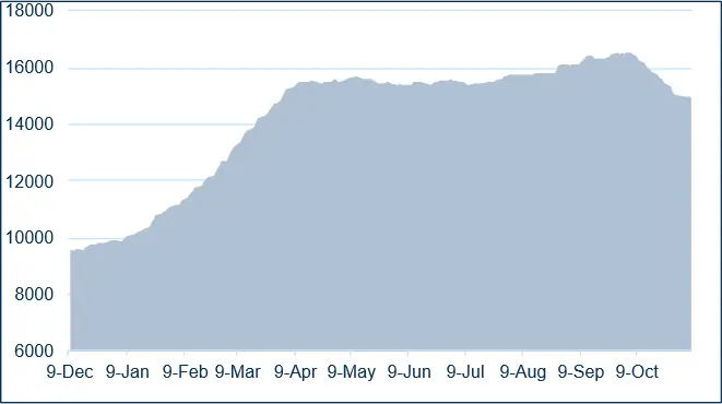 Closing level 7th October 14,933t for a drop of 1,599t or 9.7%.