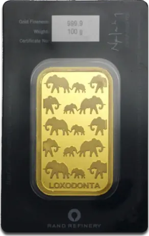Investissez dans une 100g Lingot d'Or | Loxodonta Africana | Rand Refinery aujourd'hui !